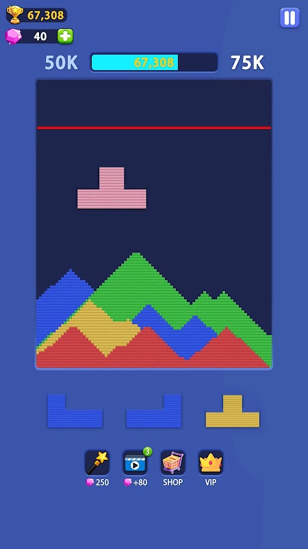 Anda akan mendapatkan 3 balok dengan warna berbeda sekaligus. Gunakan keahlian cerdas untuk menempatkan dan membersihkannya.