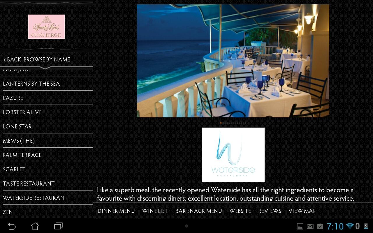 Sandy Lane Virtual Concierge Interactive Android Native Tablet App.