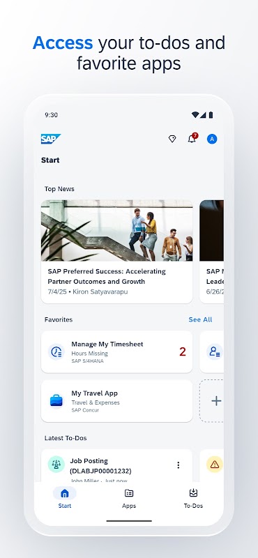 Akses perusahaan cerdas di mana saja dan kapan saja dengan SAP Mobile Start.