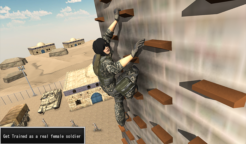 Game ini dilengkapi dengan kamp pelatihan tentara yang khusus dibuat untuk anak perempuan. Anda harus bermain sebagai komando tentara wanita / wanita dan menyelesaikan berbagai pelatihan militer dan latihan serta program pengeboran. Setelah berhasil menyelesaikan program-program ini, Anda akan muncul sebagai wanita tentara ahli yang siap melayani negaranya dalam game ini.