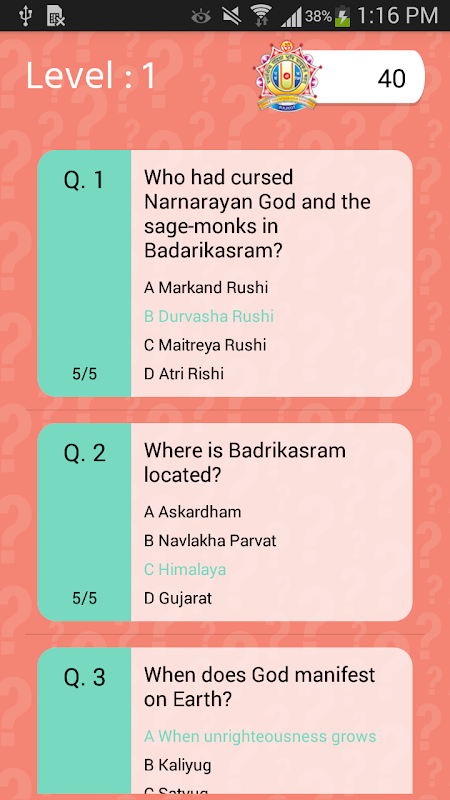 As we've learned from our school days a test of our concepts helps in the application of those and also drives home the significance. In our quest to be Ekantik sometimes the little things can be lost. Satsang quiz is a humble attempt to keep our knowledge of the Sampraday's facts intact. It is a simple quiz that can amaze and satisfy us at the same time. By the blessings and wish of Mahant Swami Shri Devkrushnadasji Swami this application is published to the Google Play on the day of Dushera in the year 2015. We hope that the application will help Satsangis enhance their general knowledge of the Sampraday.