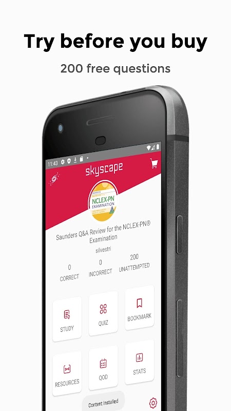 Aplikasi Skyscape didasarkan pada Saunders Q & A Review edisi cetak untuk Ujian NCLEX-PN