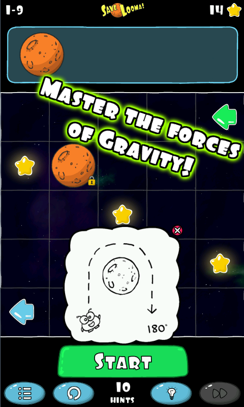 In this physics-based puzzle game, divert Looma's course with the gravity of Asteroids, blow him with Gas Giants, traverse Wormholes and much more as you guide Looma to safety, but watch out for the Cytrons!