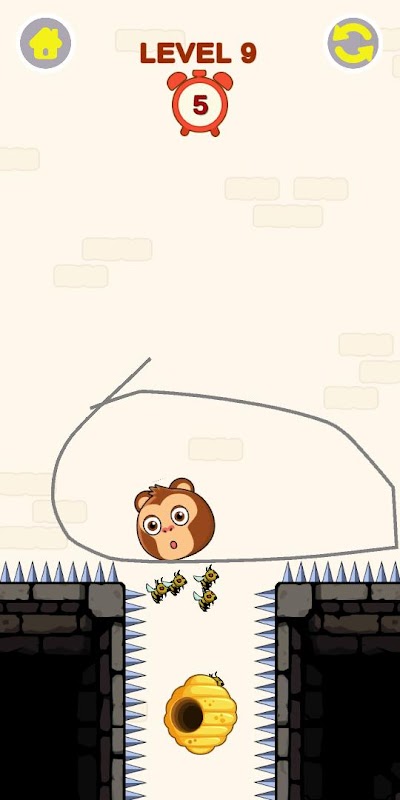 Awas! Anjing imut itu dalam bahaya. Lebah jahat keluar untuk menyengatnya. Satu-satunya cara untuk menyelamatkan anjing adalah dengan menarik garis untuk menghentikan lebah-lebah itu.