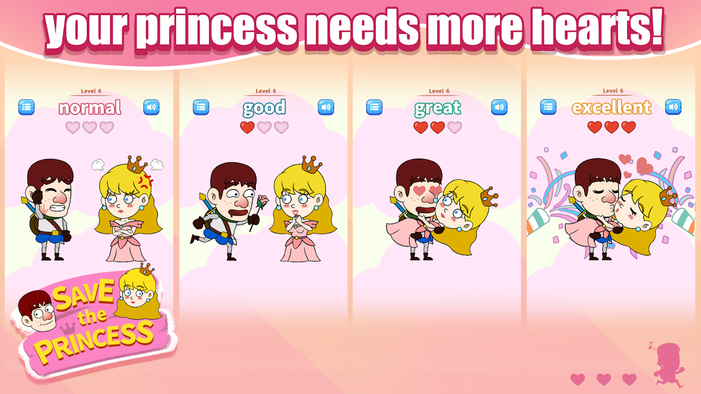 ▪ Each level has three hearts to collect, try to collect them, the princess will give the knight different rewards!