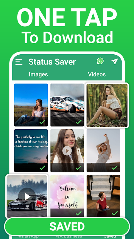 Ingin menyimpan status teman Anda hanya dengan sekali klik? Tidak perlu mencari lagi! penghemat status adalah solusi tepat Anda untuk mengunduh pembaruan status dengan cepat dan mudah. Ucapkan selamat tinggal pada kerumitan mengambil tangkapan layar atau mengganggu kontak Anda untuk pembaruan status. Cukup periksa status yang Anda suka, klik, dan simpan langsung ke galeri Anda. Juga, bagikan kesenangan itu dengan teman-teman atau poskan ulang di aplikasi media sosial favorit Anda.
