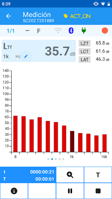 Koneksi aplikasi Tautan SC202 dengan SC202 dilakukan melalui Bluetooth dan memungkinkan kontrol penuh meteran tingkat suara: mengubah dari mode pengukuran ke mode lainnya dengan menggeser layar dengan mudah, memulai dan menghentikan pengukuran, menjeda, mundur, dan memperbesar untuk melihat lebih detail perbedaan dan persamaan antara tingkat grafik.