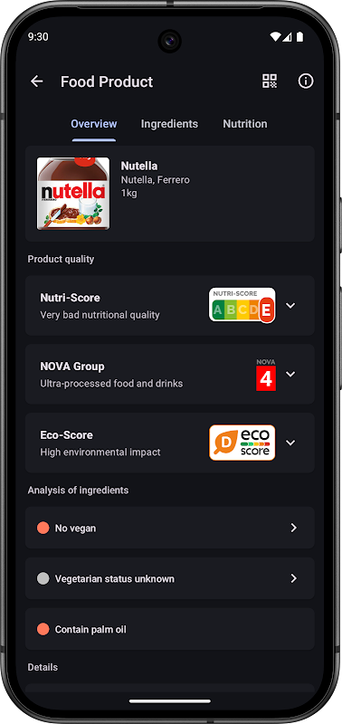 • Pindai kode batang produk Makanan untuk menerima informasi tentang komposisinya berkat database Open Food Facts dan Open Beauty Facts.