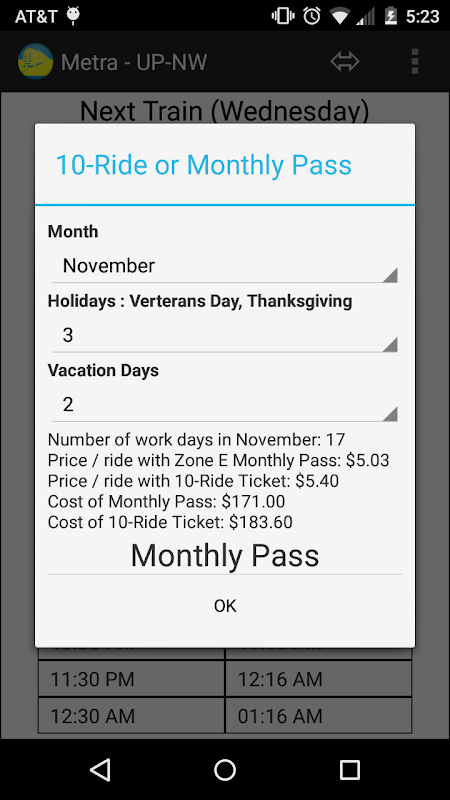 The padat jadwal Metra UP-NW dan menghitung mundur jam untuk kereta berikutnya.