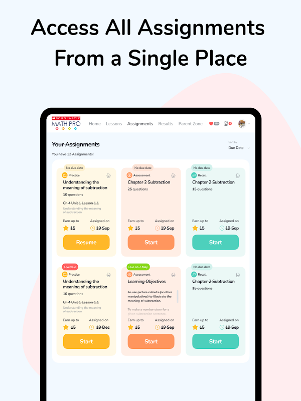 Scholastic Math Pro adalah platform digital lengkap untuk mengajar dan belajar matematika di sekolah. Dirancang untuk mendukung pembelajaran di kelas dan praktik mandiri, aplikasi ini memberi siswa cara yang terstruktur dan menarik untuk membangun keterampilan matematika mereka.