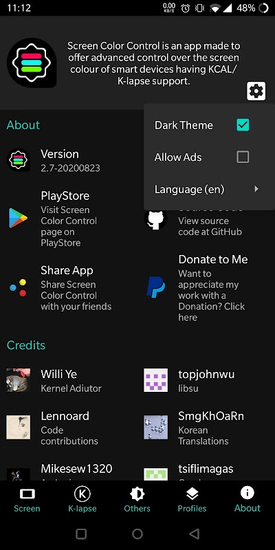 š Offer advanced control over the screen color of devices having KCAL/K-lapse support.