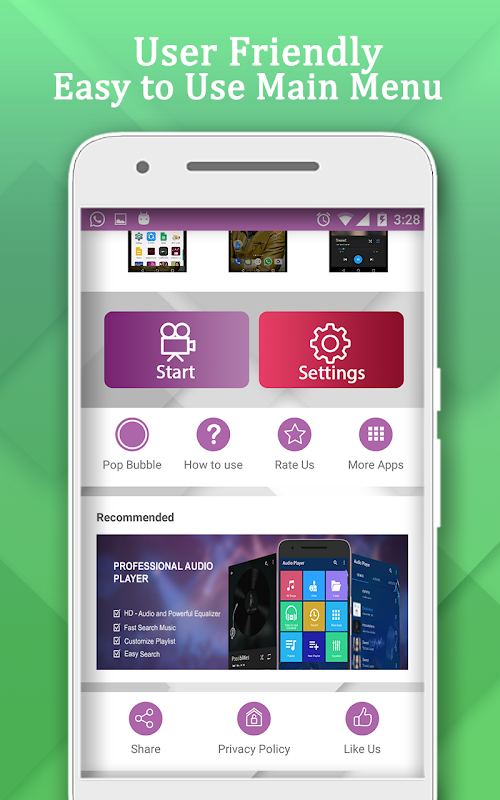 Best easy to use JU Screen Recorder, create your first, amazing video now. It does NOT require root access. JU Recorder is a free and high-quality screen recorder for Android that helps you record smooth and clear screen videos with audio. You can easily record popular mobile game, video calls with family and friends and also can record popular programs on live apps. Recording of Mobile screen has more features such as screen capture, video recorder with audio recording, video editor and no rooting needed. JU Recorder create video without Water Mark.