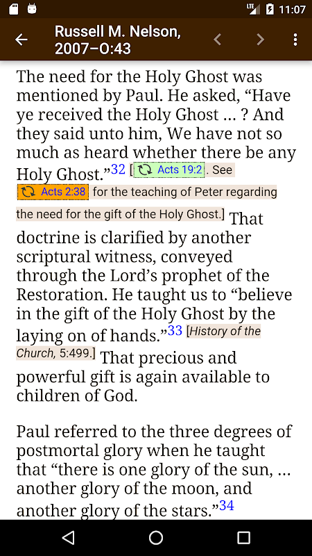 Aplikasi ini memungkinkan Anda menavigasi dengan mudah antara tulisan suci (karya standar Gereja Yesus Kristus dari Orang-Orang Suci Zaman Akhir: Alkitab, Kitab Mormon, dll.) Dan ceramah-ceramah Konferensi Umum dan tulisan-tulisan lain yang mengutip tulisan suci itu.