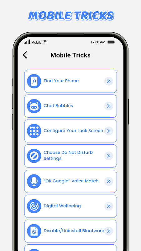 Jelajahi cara sederhana untuk memaksimalkan potensi perangkat Android Anda dengan mudah. Aplikasi ini menawarkan trik seluler paling tersembunyi dan membantu memperluas pengetahuan Anda. Anda akan menemukan banyak fitur ponsel Android yang mungkin belum Anda ketahui sebelumnya. Setiap trik dijelaskan langkah demi langkah di aplikasi trik dan tip ponsel. Kuasai perangkat Android Anda hanya dalam hitungan menit, dan temukan berbagai kode rahasia yang berfungsi di perangkat seluler apa pun.