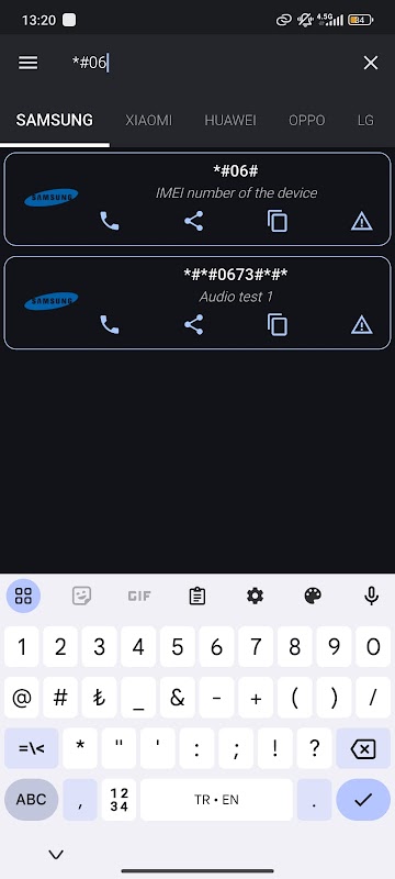 Anda dapat mencari fungsi apa pun dalam aplikasi dan Anda dapat menjalankan kode rahasia apa pun dengan menggunakan tombol panggil. Anda juga dapat membagikan kode rahasia di media sosial dengan mudah.