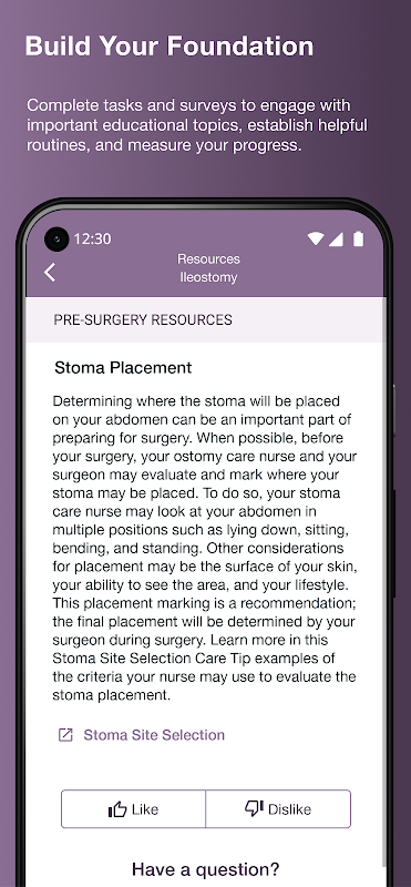 Aplikasi Pendamping Perjalanan Ostomy ini adalah perpanjangan digital dari layanan Mulai Aman℠, memberikan pendidikan dan dukungan yang tepat waktu. Ini dirancang untuk membantu: