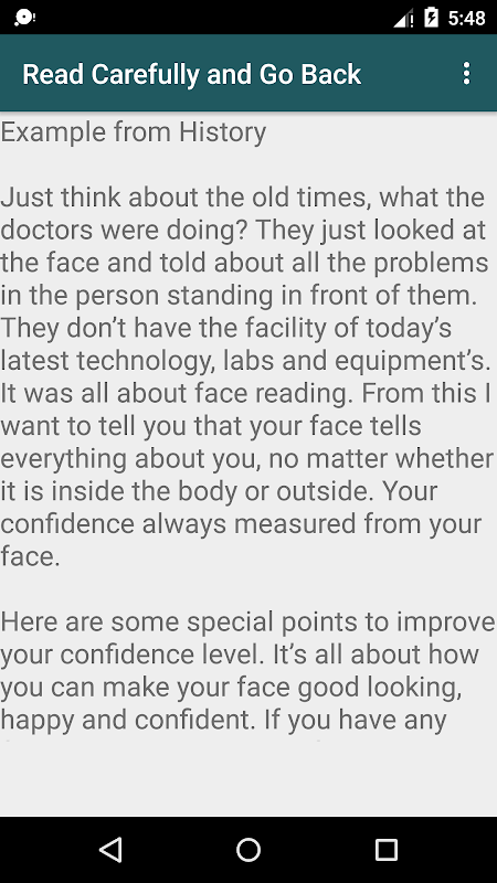 Reading and implementing the available confidence Exercises/tips in this app will help you to build and maintain your confidence level for any situation like job interviews, embassy interviews, visa interviews, business meetings, political meetings, sales meetings, conferences, workshops, training sessions, hosting, TV shows, events, gatherings etc.