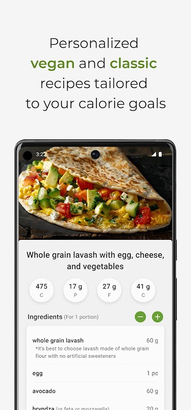 Buat rencana nutrisi personal yang mempertimbangkan tujuan, tingkat aktivitas, dan preferensi diet Anda. Aplikasi kami membantu Anda menghitung keseimbangan optimal kalori, protein, lemak, dan karbohidrat (CPFC), menawarkan pilihan untuk diet klasik dan vegan. Dengan mengikuti rencana individual Anda, Anda dapat mencapai hasil yang diinginkan dalam menjaga kesehatan dan kesejahteraan yang prima.