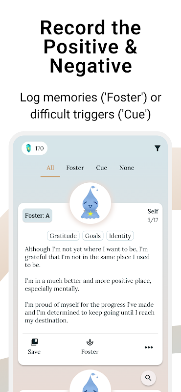 Catat dengan cepat pemicu emosional yang sulit ('Cue') atau kenangan positif yang membangun koneksi ('Foster').
