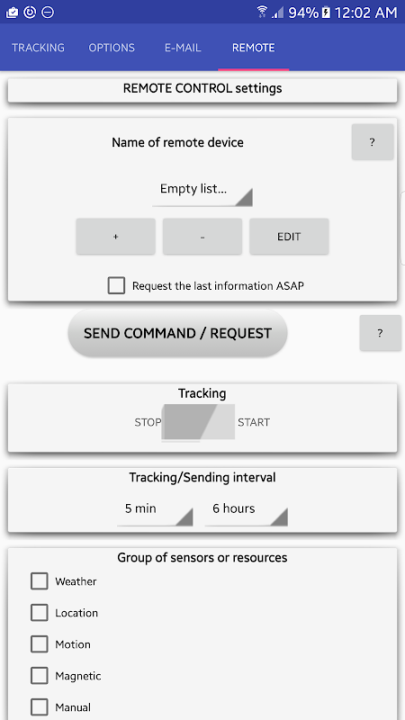 Sensor EMail Tracker is the App that allows you to determine and track the sensor information of your Android devices, it quietly records periodically. The recorded sensor data stores in the device memory and then transmits to your e-mail address as a database table. To monitor sensors of your tracked devices, you just open your e-mail account on any computer, tablet or smartphone and see the list of sensor data.