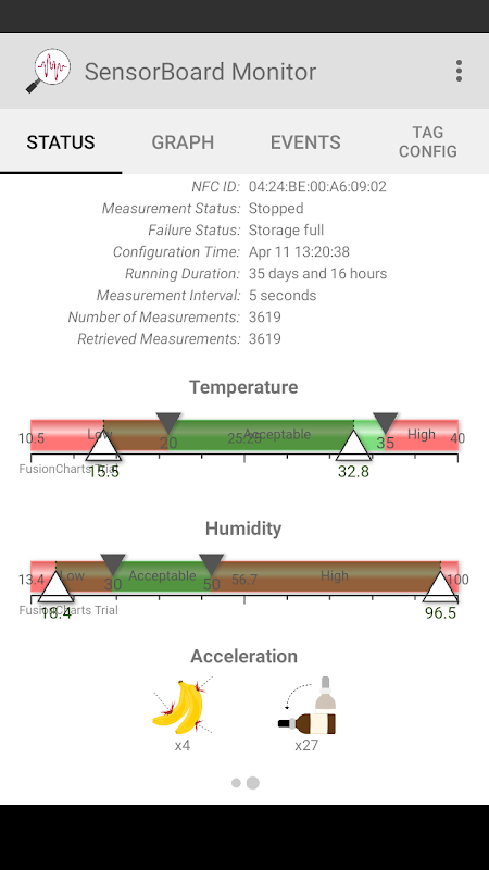 This demonstrates a solution based on NTAG SmartSensor combined with other sensors, such as a MEMS accelerometer and a humidity sensor, provides information about the environmental conditioning (temperature and humidity) and the handling of goods (shocks, orientation and vibration).