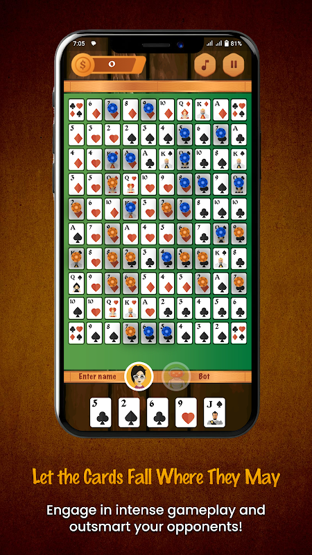 Kalahkan ponsel Anda dan dapatkan hadiah! Tujuannya adalah membuat pola 5 kartu: horizontal, vertikal, atau diagonal. Pemain yang berhasil mendapatkan kelima kartu secara berurutan terlebih dahulu menang dan mendapatkan 10 koin sebagai hadiah. Apakah Anda siap untuk permainan?