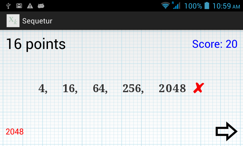 Suka bersenang-senang dengan angka? Sequetur- menantang Anda untuk menyelesaikan serangkaian urutan angka dan memberikan poin berdasarkan tingkat kesulitan setiap teka-teki. Hati-hati, memasukkan jawaban yang salah akan mengakibatkan pengurangan seperempat poin teka-teki dari total poin Anda, tetapi Anda dapat melewati teka-teki yang menurut Anda terlalu sulit. Petunjuk diberikan dengan menunjukkan jumlah digit dalam jawaban yang benar, dan menyajikan 5 digit yang menjadi dasar jawaban. Versi ini memerlukan akses daring, menampilkan iklan, dan menggunakan serangkaian teka-teki yang diperkecil.