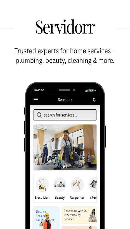 📲 Unduh Servidorr sekarang dan nikmati layanan bebas stres di ujung jari Anda—baik itu memperbaiki kebocoran, mengecat rumah, atau memesan sesi kecantikan.