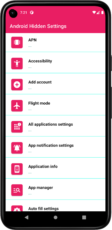 Aplikasi pengaturan ini memberi Anda kebenaran pengaturan untuk android seperti wifi, wirless, pengaturan suara, dll. Jadi Anda dapat menggunakannya untuk berbagai tujuan. Alih-alih pergi ke pengaturan dan mencari, Anda dapat mengaksesnya dalam satu klik dengan aplikasi ini.