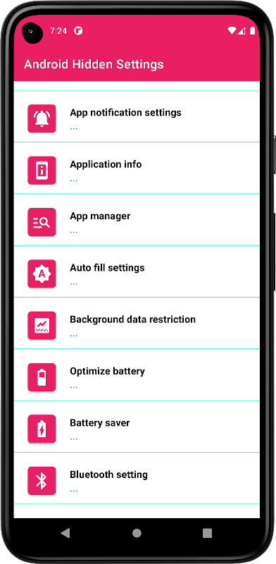 Tampilan aplikasi cettings ini sangat sederhana dan memiliki akses satu halaman. Ini adalah aplikasi pengaturan gratis sehingga tidak ada masalah akses untuk pengaturan telepon tertentu, beberapa pengaturan mungkin tidak berfungsi di ponsel android Anda tergantung pada perangkat lunak dan konfigurasi perangkat keras ponsel Anda.