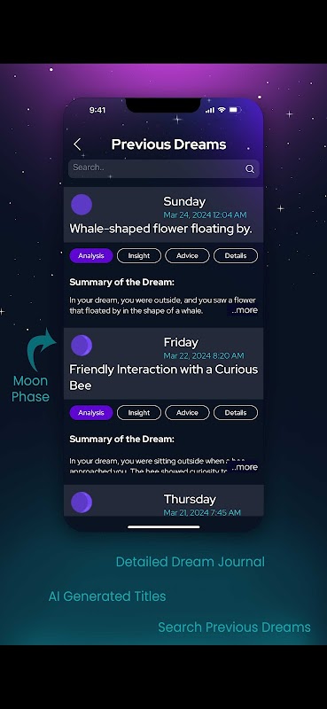 Penyelaman Mimpi Interaktif: Terlibat dalam percakapan bermakna tentang spesifik mimpi Anda – lokasi, perasaan, perspektif, dan banyak lagi – untuk memastikan analisis yang disesuaikan dan bernuansa.