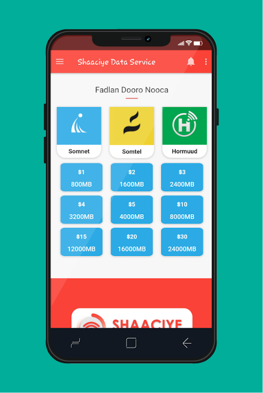 Aplikasi Layanan Data Ka iibso Shaaciye xirmooyinka Somnet Data oo Raqiis ah