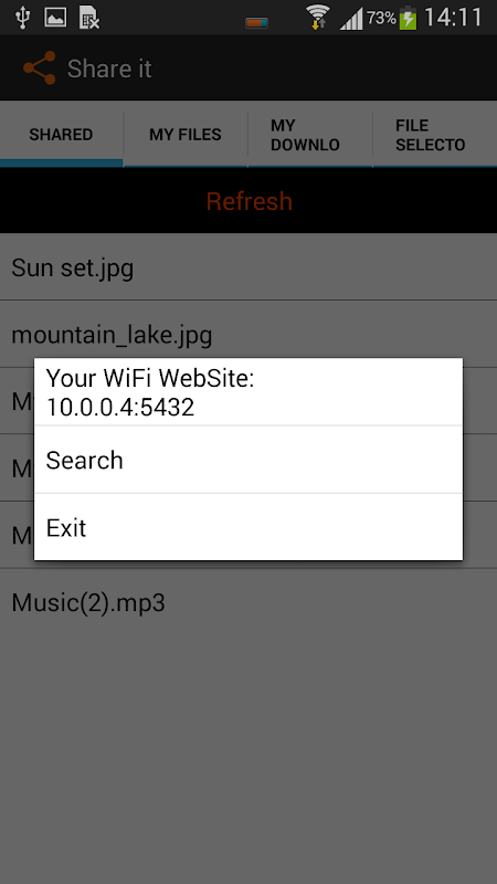 2.In Selector tab file Anda dapat memilih file atau folder yang Anda inginkan untuk berbagi dan setelah Anda membuat pilihan Anda aplikasi secara otomatis akan berbagi file yang telah Anda pilih.