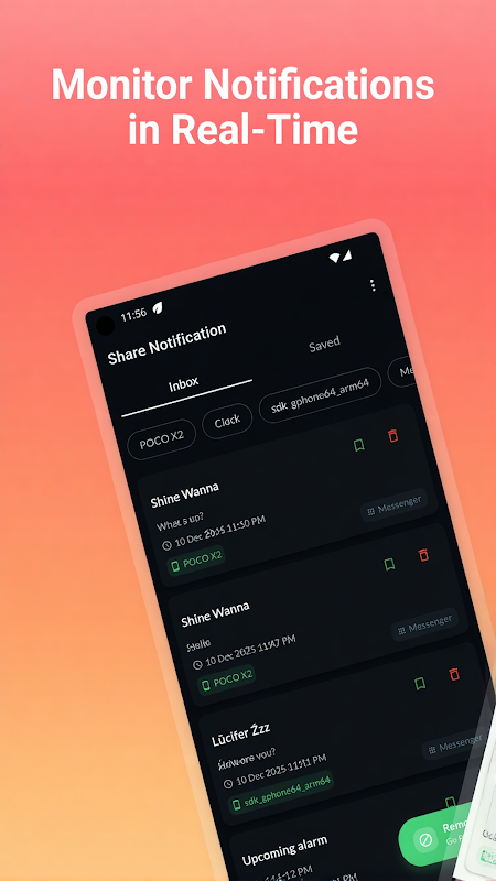 Dengan Bagikan Notifikasi, Pengelola Notifikasi, Anda dapat dengan mudah berbagi notifikasi dari aplikasi yang terinstal dan aplikasi sistem seperti media sosial (Messenger, Twitter, Instagram, TikTok), perbankan, perpesanan, dan bahkan panggilan masuk. Ini menjadikannya sempurna untuk melacak pembaruan, pesan, atau panggilan penting dari berbagai aplikasi dan perangkat.