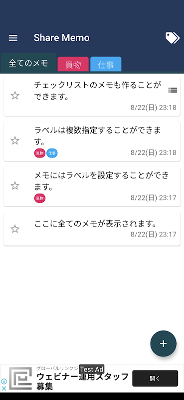 ShareMemo adalah aplikasi memo yang memungkinkan Anda membagikan catatan yang ingin Anda bagikan dengan aman. Bagikan daftar belanja, rencana perjalanan, dan daftar tugas dengan pasangan, keluarga, dan teman Anda secara langsung. Cegah lupa dengan notifikasi pengingat. Tidak perlu registrasi, jadi Anda bisa langsung menggunakannya.