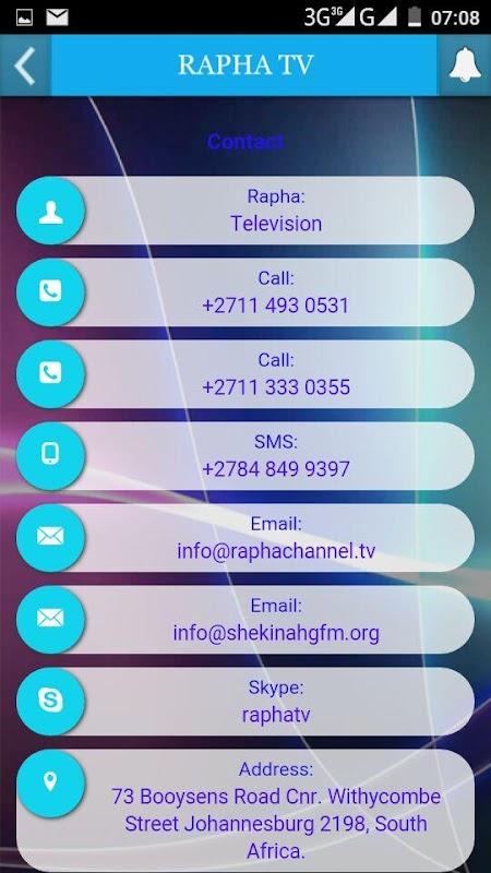 Rapha Tv adalah saluran televion dari Shekinah Glorious Iman Ministries di JHB RSA