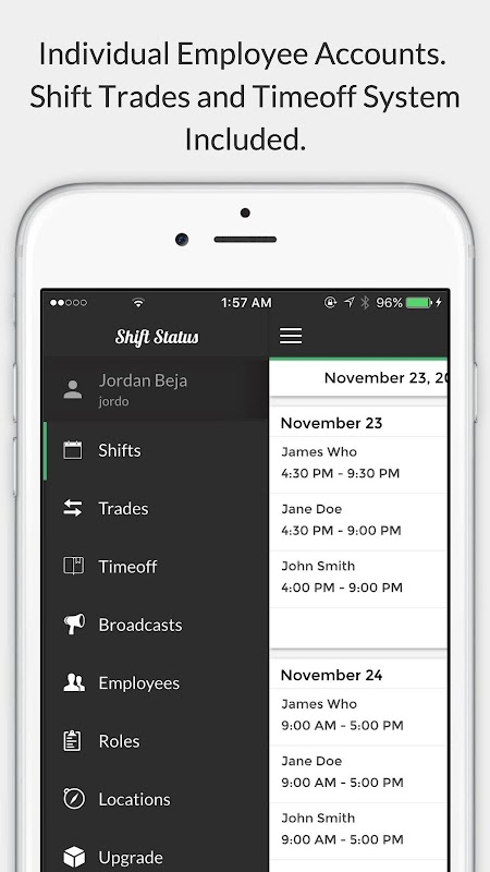 Each employee gets their own account, and can check their work schedule anytime, anywhere. Employees can make both timeoff and trade requests through the app.