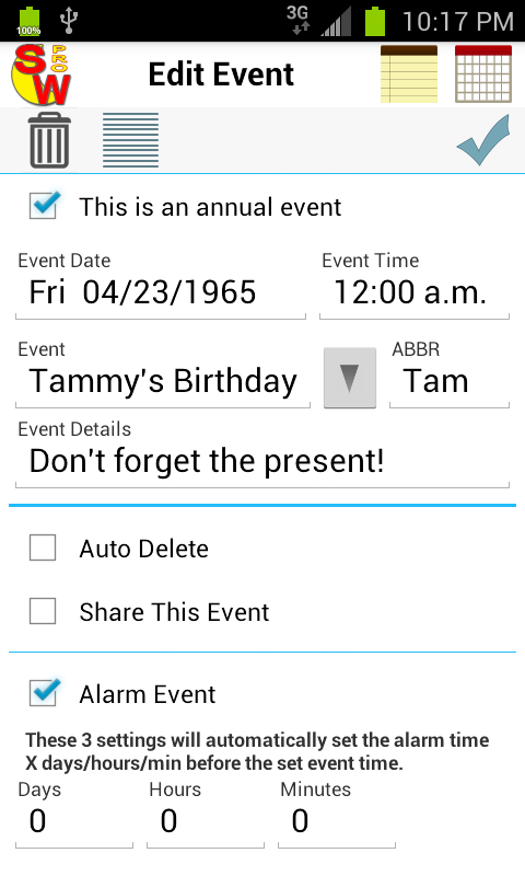 * Penuh fitur acara / janji dengan mengkhawatirkan.