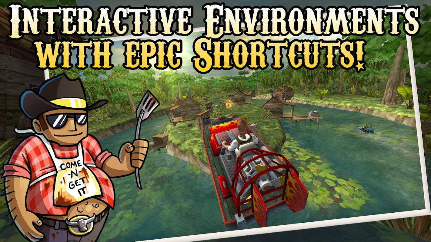 Jelajahi dunia selatan yang penuh warna yang dipenuhi dengan perahu dengan detail tinggi, karakter animasi, lingkungan bayou, rawa, dan pegunungan yang indah, semuanya berjalan pada framerate yang sangat halus di ponsel cerdas atau tablet Anda, atau Android TV!