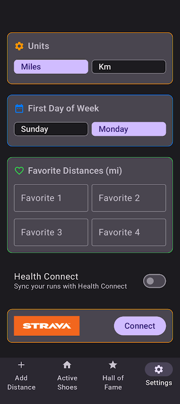Tidak ada aplikasi lain yang memudahkan Anda memasukkan jarak lari dan berganti sepatu. Apakah Anda benar-benar membutuhkan GPS untuk memberi tahu seberapa jauh Anda telah berlari? Tidak perlu membawa ponsel saat berlari. Cukup masukkan jarak Anda kapan saja setelah berlari. Aplikasi ini dapat digunakan sepenuhnya secara offline, atau aktifkan Strava dan catat lari Anda ke layanan online populer ini. Apakah Anda sering berganti sepatu lari? Cukup geser ke atas atau ke bawah pada area foto sepatu untuk berpindah dari satu sepatu ke sepatu berikutnya!
