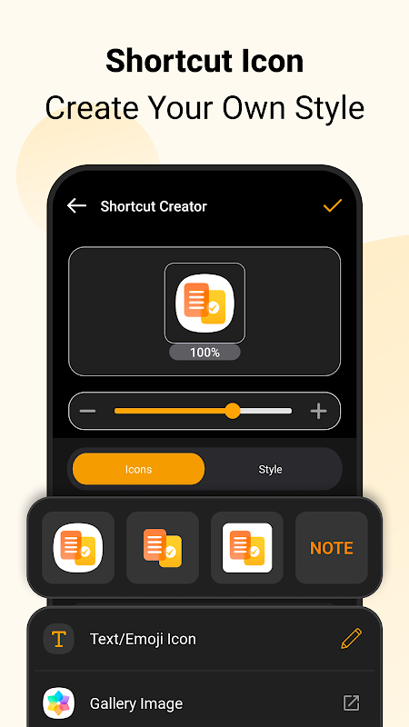 Personalisasikan pintasan dengan mengubah ikon, menyesuaikan ukuran atau gaya, atau memilih gambar dari galeri Anda.