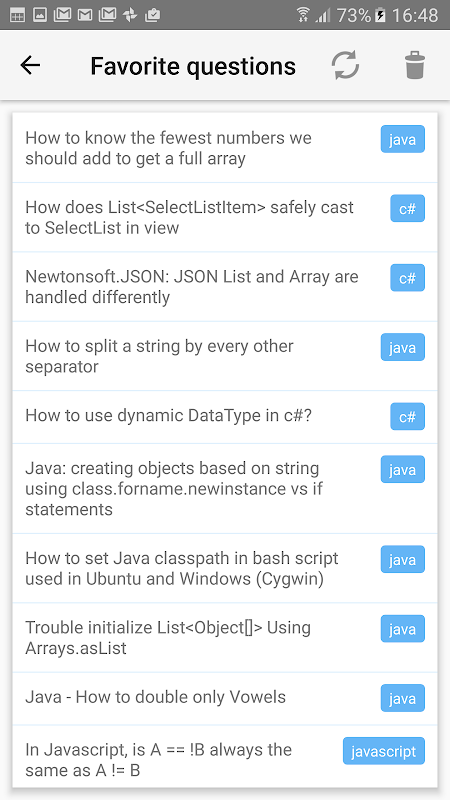 You can decide which questions are relevant to you by swiping either left or right. If you want to keep a question for later, just add it to favorites and get back to it once you have more time. If you want to delve into details of the current question or simply add a new, better answer, just follow the link on the question card.