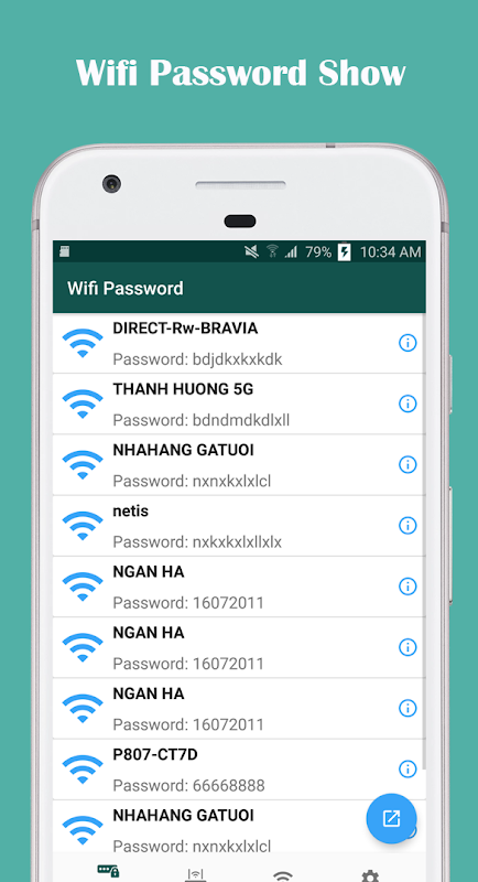 Tampilkan kata sandi wifi - Pemindai Jaringan adalah aplikasi untuk mengelola dan mencadangkan semua kata sandi wifi yang terhubung di ponsel Anda. Tampilkan kata sandi wifi memungkinkan Anda untuk menyalin kata sandi wifi bersama yang disimpan ke teman-teman Anda.