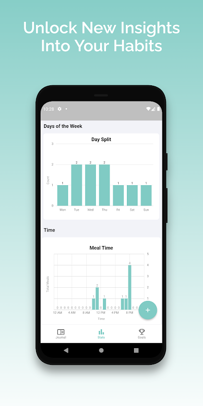 - Lihat statistik untuk setiap kebiasaan makan tertentu yang telah Anda tambahkan ke jurnal Anda