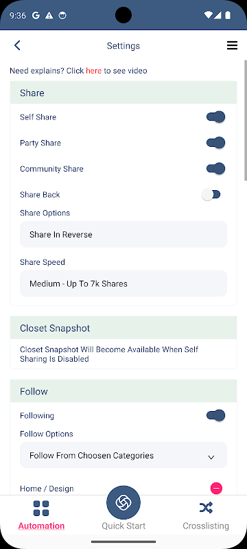 Bot Poshmark: Melakukan self-share, party share, community share, lelang senyap, follow, & unfollow secara otomatis.