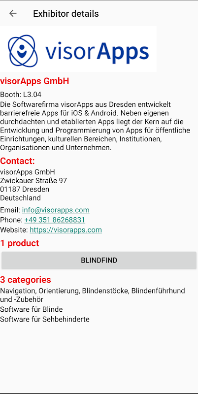 Aplikasi untuk pameran perdagangan Frankfurt untuk bantuan bagi orang buta dan tunanetra