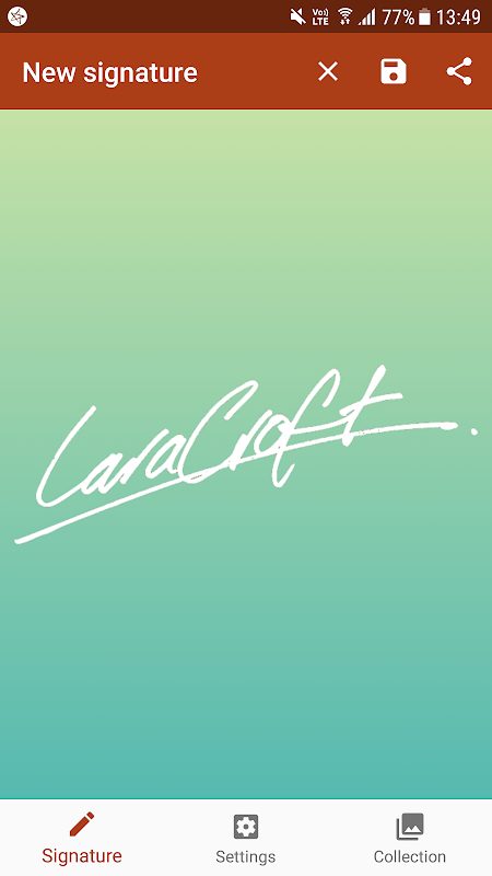 Signature Creator Lite (2,5 MB) merupakan sebuah platform tanda tangan intuitif yang memungkinkan Anda untuk membuat membuat tanda tangan Anda sendiri di ponsel Android.