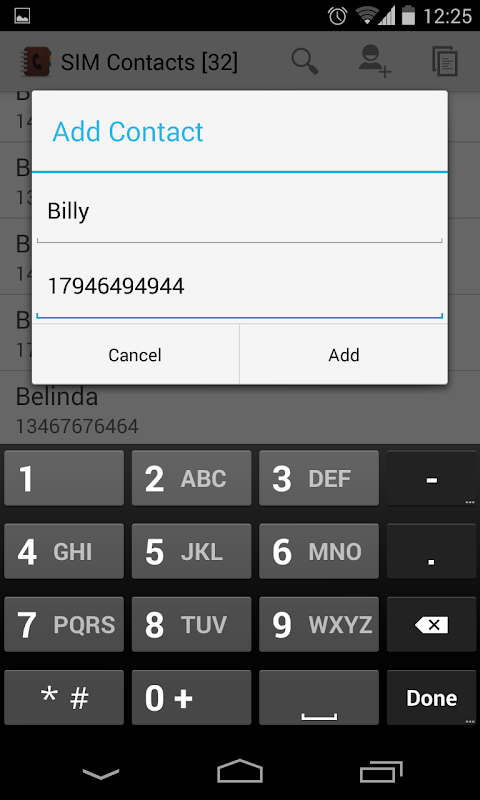 Sebuah aplikasi sederhana ringan, dengan UI bersih dan ramping, untuk mengelola kontak kartu SIM Anda. Saat operasi berikut ini didukung: