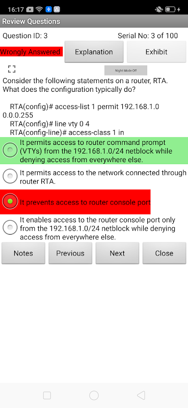 Penjelasan lengkap disediakan untuk setiap pertanyaan dalam mode Belajar, dan lingkungan ujian yang sebenarnya disimulasikan dalam mode Ujian. Opsi untuk menyimpan hasil dan meninjau pertanyaan disediakan.
