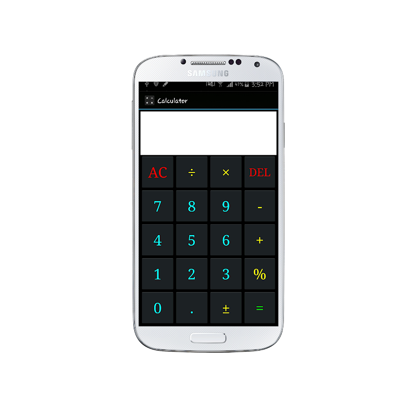 Terlepas dari operasi matematika dasar seperti penambahan, pengurangan, perkalian dan pembagian; kalkulator ini memiliki persen dan backspace (DEL) fungsi juga.